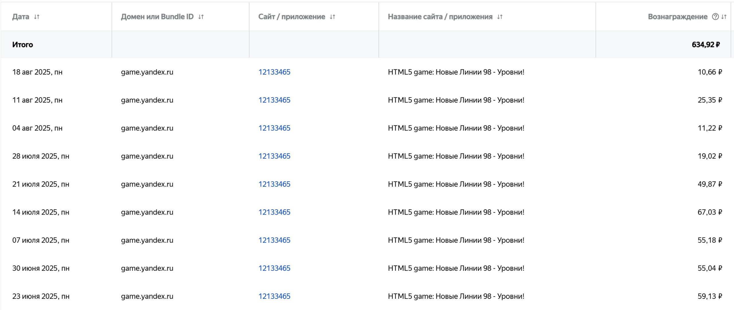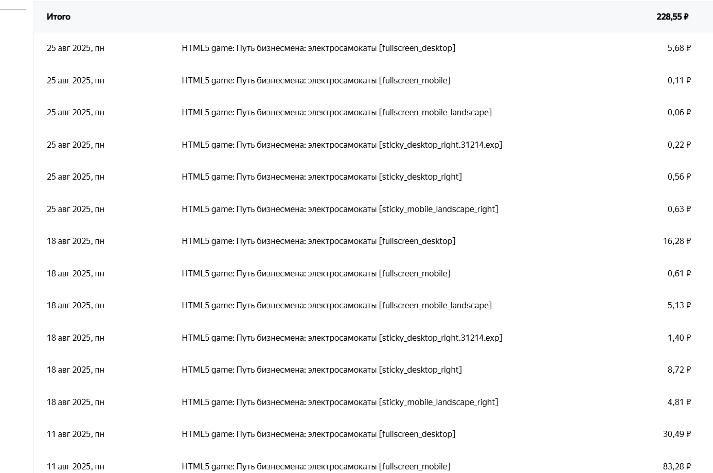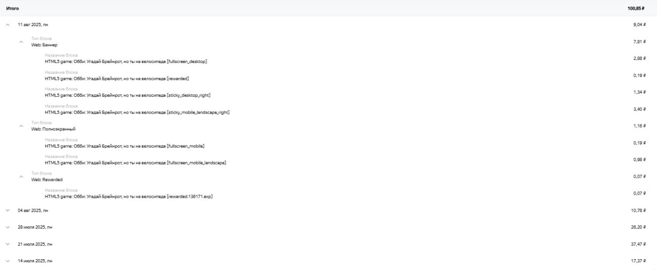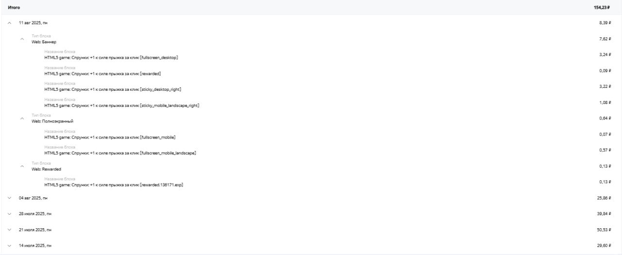 Доход за последние 7 дней - 585₽ Доход за последние 30 дней - 4820₽
